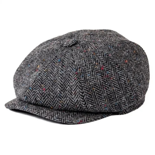De Flatcap Herrinbone Tweed Wool 8 Panel, ook wel bekend als een “plat pet” of “krantenjongenspét”, is een ronde pet met een klein, stijve klep aan de voorkant. De flatcap heeft een klassieke en tijdloze uitstraling. Flatcaps hebben een rijke geschiedenis en worden vaak geassocieerd met de Britse cultuur, hoewel ze wereldwijd gedragen worden.